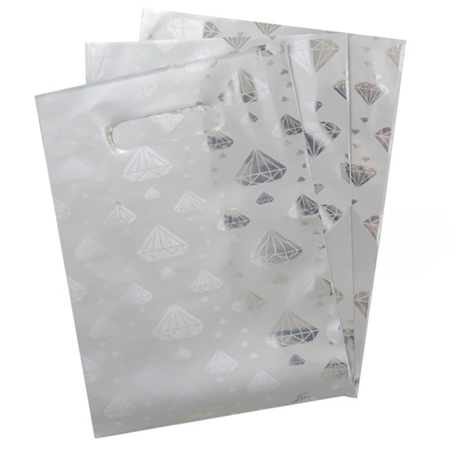 Az ár 1 darabra értendő. Mérete: 180x240 mm. Ezüst színű gyémánt kő mintájú celofán táska, ajándék részére.