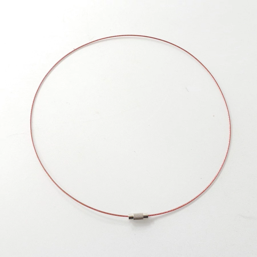 Az acélsodrony kb 1 mm vastagságú és színes műanyag bevonata van. A csavaros vége tekerésével nyitható. Óvatosan levehető a vége, így rá lehet fűzni medálokat, gyöngyöket. Hossza 45 cm.